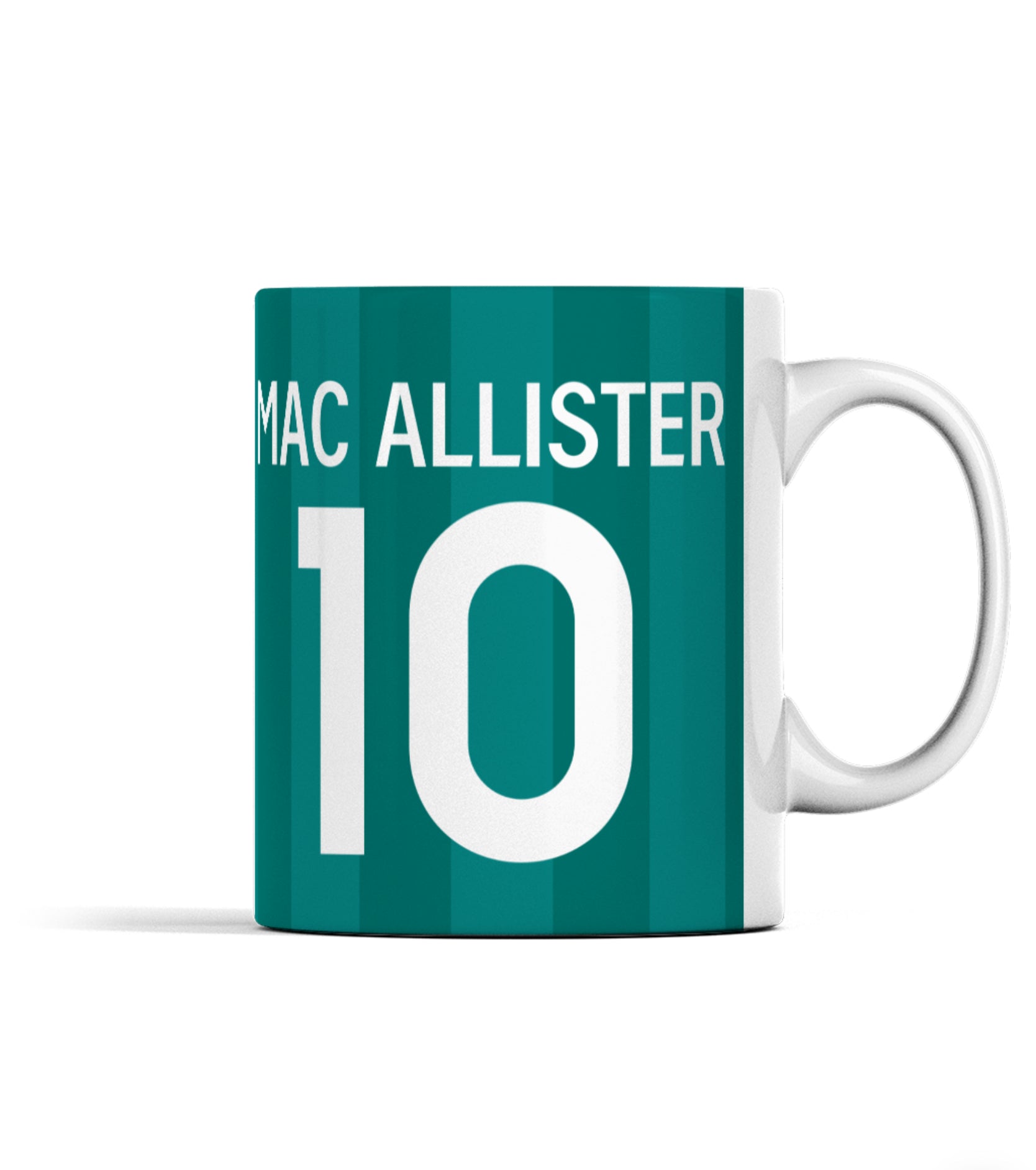 Customize it with your favourite player's name and number, or personalize it with your own! Whether you're sipping tea, coffee, or celebrating a win, this high-quality ceramic mug is a must-have for matchdays and beyond.